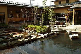 都幾川のせせらぎを聞きながら入浴できる日帰り温泉です。木の湯 or 石の湯、男女週替わりで楽しめます。木材多用した古民家風建物にて日頃の疲れを癒します。