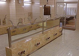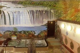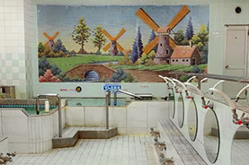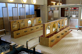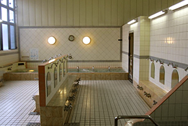 池袋・椎名町・要町界隈 立教大学至近の銭湯です。竹を配した岩風呂や男女異なる 河をイメージしたタイル壁画が特徴です。