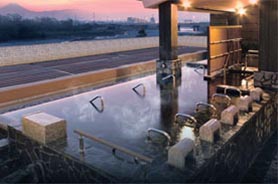 屋上の天望掛け流し風呂が特徴!! 食事処や休憩施設等充実した大型日帰り温泉です