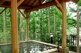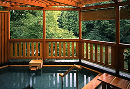 満願滝を眺めながら 入浴できる露天風呂が特徴。当地で湧出する天然温泉を使用てます。
