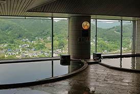 都幾川のせせらぎを聞きながら入浴できる日帰り温泉です。木の湯 or 石の湯、男女週替わりで楽しめます。木材多用した古民家風建物にて日頃の疲れを癒します。