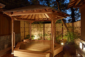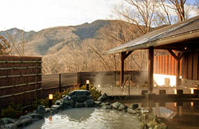 丹沢大山国定公園東部・七沢温泉の日帰り入浴可能な旅館です。露天風呂は、明治天皇大観記念樹を含む庭園にあります。