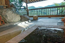 房総丘陵の山里、養老川付近にある日帰り温泉です。 大自然下の木材多用した館内にてマイナスイオンを十二分に浴びることができます。