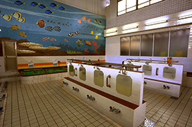南武線浜川崎支線 小田栄駅周辺の銭湯です。大浴場の滝をイメージした大壁面が売りです。ソファー席 待合スペースも完備してます。