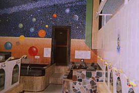 幸区古市場のビル内にある銭湯です。大浴場のメルヘンチックなタイル画が売りです。