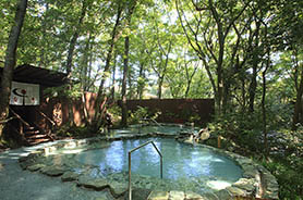 神奈川県西部の足柄に佇む、宿泊可能な日帰り温泉です。森の中の露天風呂が売りです。