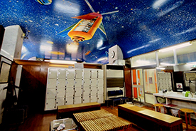 大塚駅徒歩圏、南大塚3丁目のビル内銭湯です。 脱衣室の宇宙画が特徴!!