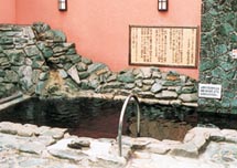 | 当店の露天風呂にある温泉は埼玉県蕨市より運搬してきたもので、 泉質はナトリウム炭酸水素塩温泉の黒湯、ph値は8.1です。 |