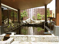 透明度10〜20cmの黒に近い濃褐色湯。 ヌルヌル感あり |