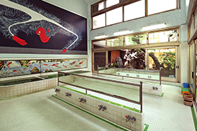 | 東京メトロ日比谷線三ノ輪駅より徒歩10分。竜泉3丁目にある鉄筋コンクリート造の銭湯です。浴室は室内のみ。温度が異なる2浴槽があります。洗い場付近は章仙作・錦鯉のタイル絵で彩られてます。浴室や脱衣所から庭が眺められ自然と共に楽しめます。待合スペースあり湯上がり休憩も適します。当店の創業は明治末期(1900年〜1910年頃)。明治・大正・昭和・平成・令和と5つの元号を跨ぎ営業してきました。 |