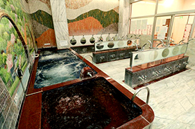 JR埼京線 浮間舟渡 界隈の露天風呂付銭湯です。露天風呂にて、福島の沼尻温泉を再現し使用してます。美しい乳白色のお湯が身体を芯からあたためます。その他、日替わり薬湯や各種ジャグジー風呂等あります。浴場壁面はタイル画、床面は大理石白色ベースで暖みをイメージしてます。1978年(昭和53年)6月より現建物で営業してます。